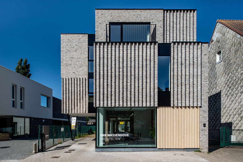 In het centrum van Zwijnaarde hebben architecten Van Wassenhove hun familiaal kantoor gevestigd om hun activiteit te verankeren. Gelegen naast het cultureel centrum, biedt deze nieuwbouw ook een duplexwoning op twee niveaus, met een terras aan de achterkant.