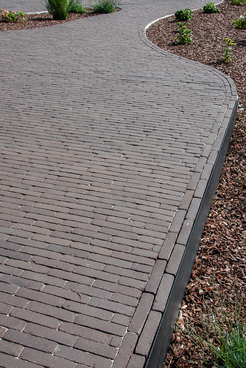 De verharding moet beschermd worden tegen verschuiving door een zijdelingse opsluiting van de klinkers. De kantopsluiting wordt geplaatst vóór het aanleggen van de fundering.