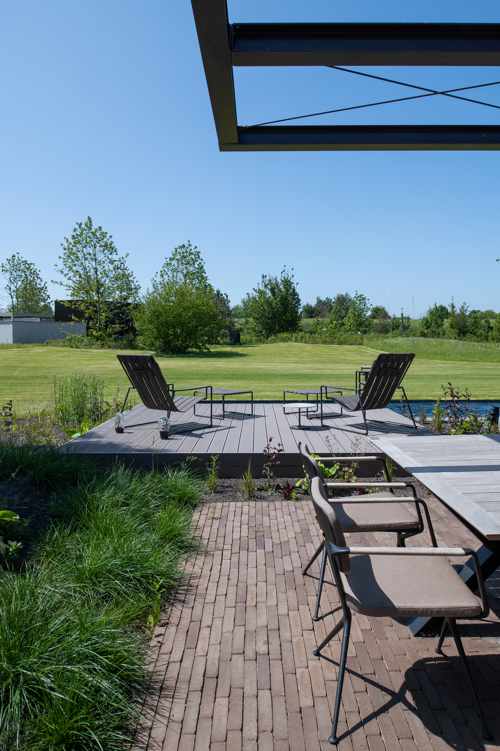In een glooiend landschap nestelt zich een hedendaagse tuin die meteen in het oog springt door zijn ingetogen schoonheid en sterke ruimtelijke structuur. Deze landschapstuin, opgebouwd rond een biozwembad met overlooprand, is het resultaat van een doordachte ontwerpvisie waarin tijdloosheid, ecologie en duurzaamheid de kern vormen. Elke lijn, elk materiaal en elk beplantingselement draagt bij aan een harmonieus geheel dat zich naadloos inschrijft in de omgeving.