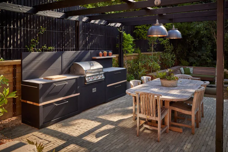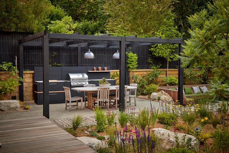 Een moeilijke oefening om al deze functionaliteiten in één geheel te combineren, maar een uitdaging die de ontwerper graag aanging. "Onze ontwerpaanpak was om te putten uit het idee dat 'tuinen voor mensen zijn' en een tuin te ontwerpen die zoveel mogelijk functionele vereisten van onze klant omvatte. Het was belangrijk om onze klanten redenen te geven om hun tuin weer te gebruiken en ervan te genieten", voegt Matthew Childs toe.