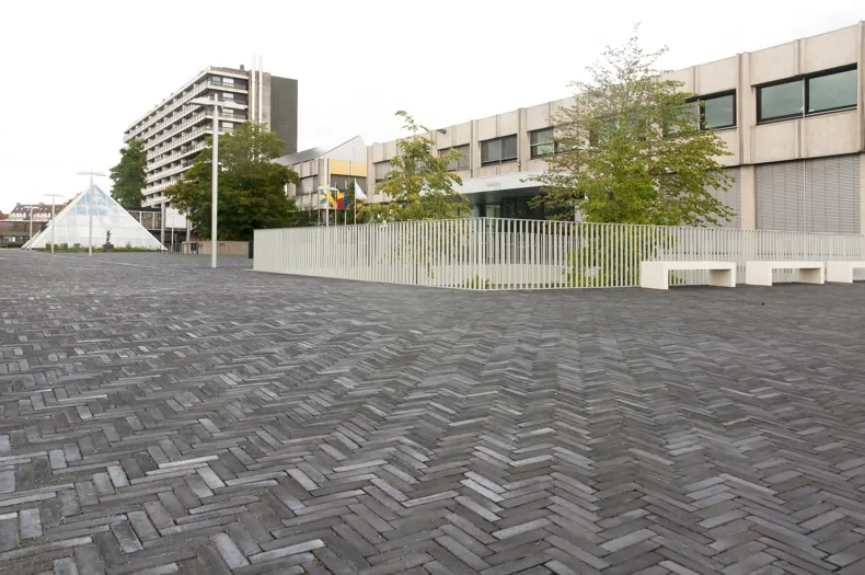 Zo werden de kleiklinkers op de helling verwerkt in halfsteensverband, terwijl op er op het vlakke gedeelte boven een elleboogverband werd toegepast. De verschillende lichtinvallen zorgen er ook voor dat de dynamiek van de hellende promenade wordt geaccentueerd.