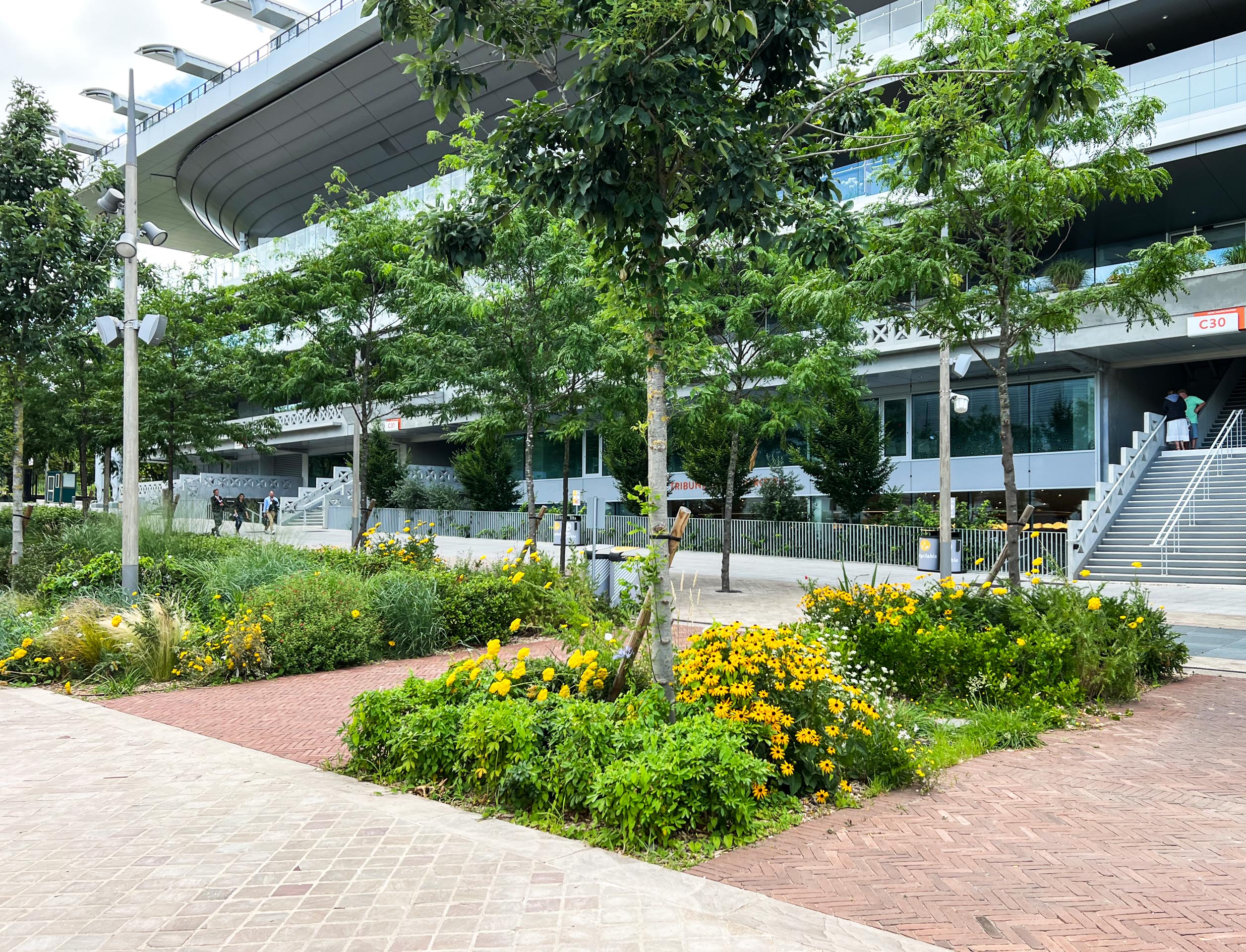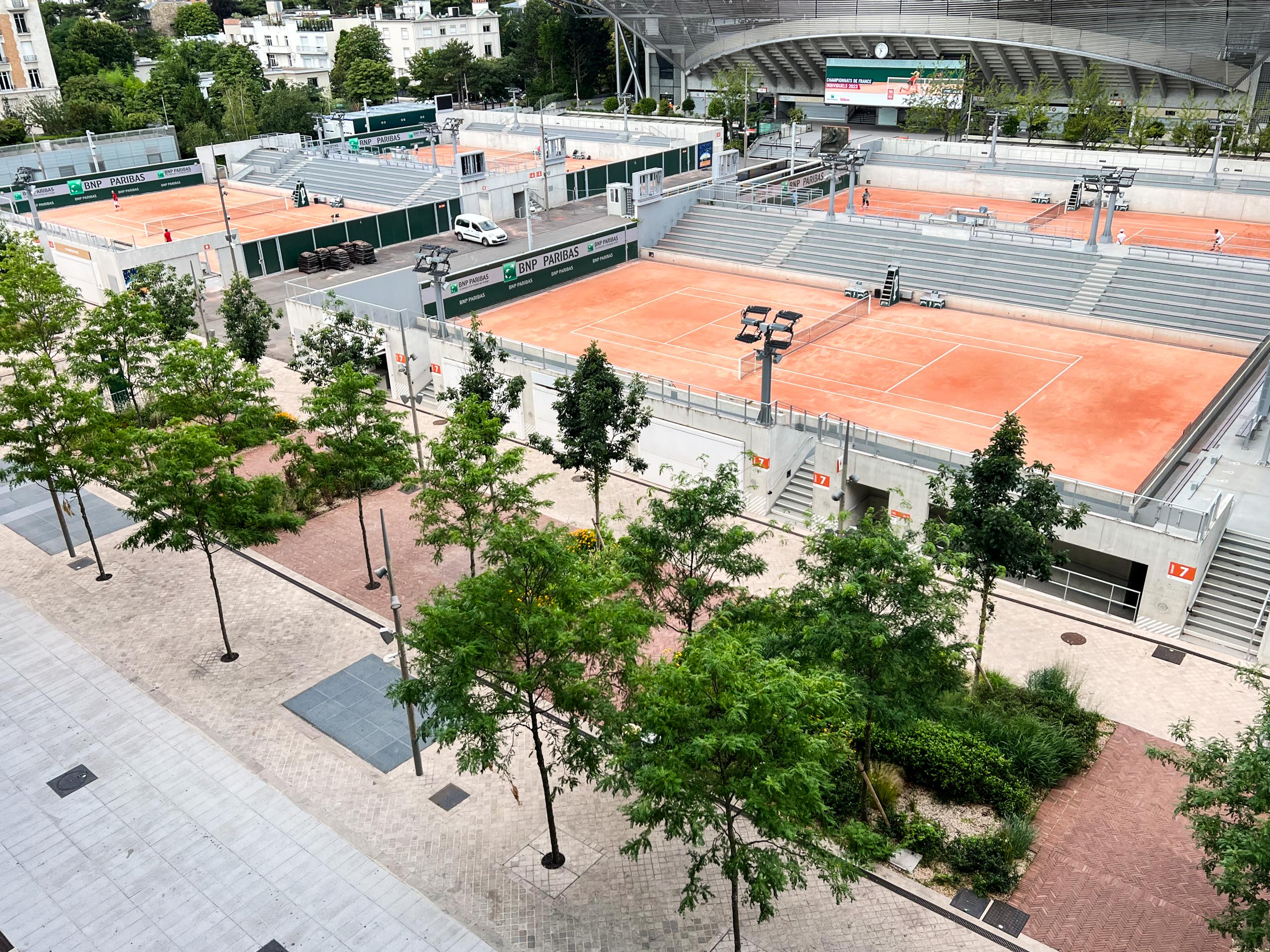 Het doel van de modernisering van de Place des Mousquetaires was het herstel van het federale paviljoen naar zijn oorspronkelijke staat. Er is één hectare groene ruimte gecreëerd waar de kleiklinkers gebruikt werden voor de verharde paden, net vóór de beroemde Philippe Chatrier court. Deze plaats biedt niet alleen een visueel aantrekkelijk landschap, maar ook functionele paden die bezoekers door het groene terrein leiden. De grote 'Pelouse des Mousquetaires' is nu een aangelegde groene zone die zowel spelers als toeschouwers uitnodigt om te genieten van een groene oase midden in de stad.