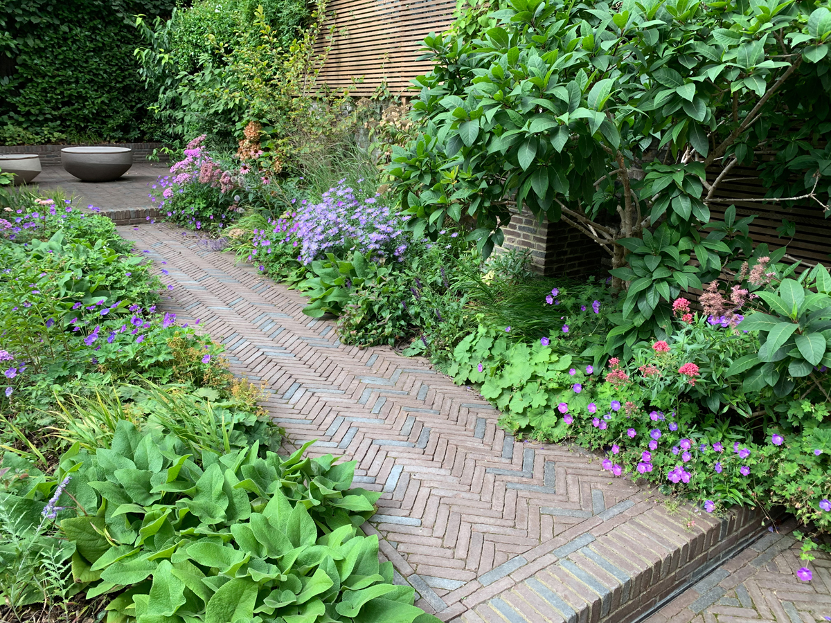 De instructies waren vrij summier. Een van de voornaamste richtlijnen was de tuin zodanig in te richten dat hij het hele jaar door kleurig en aantrekkelijk zou zijn. Daarom verplaatsten we de grotere struiken naar de rand, terwijl in het centrale deel vooral weelderige meerjarigen en bolgewassen staan.