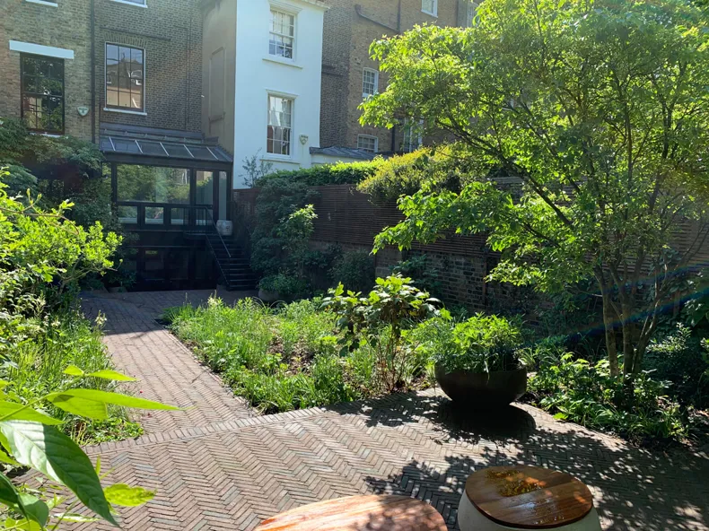Stefano Marinaz: “Onze heraanleg van de grote, op het westen gerichte tuin van dit prachtige Georgiaanse gebouw in South Kensington sloot aan op de volledige restauratie van het huis door de Londense architecten MWAI en aannemer Taramelli.
