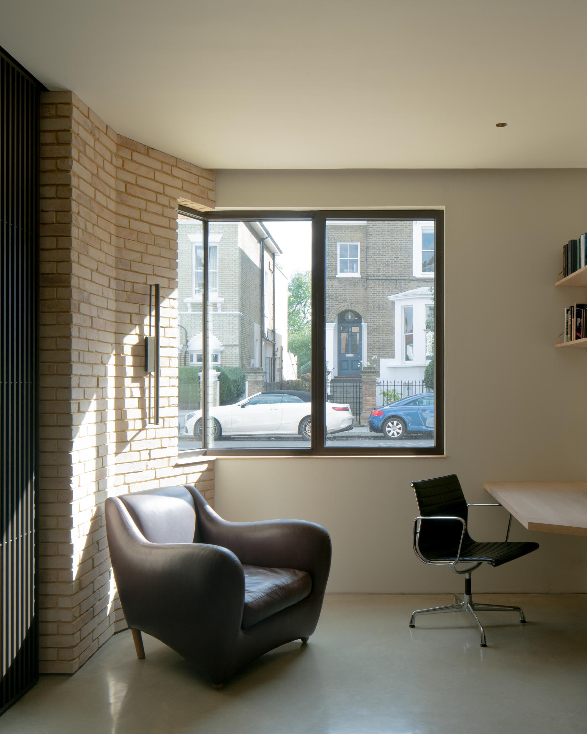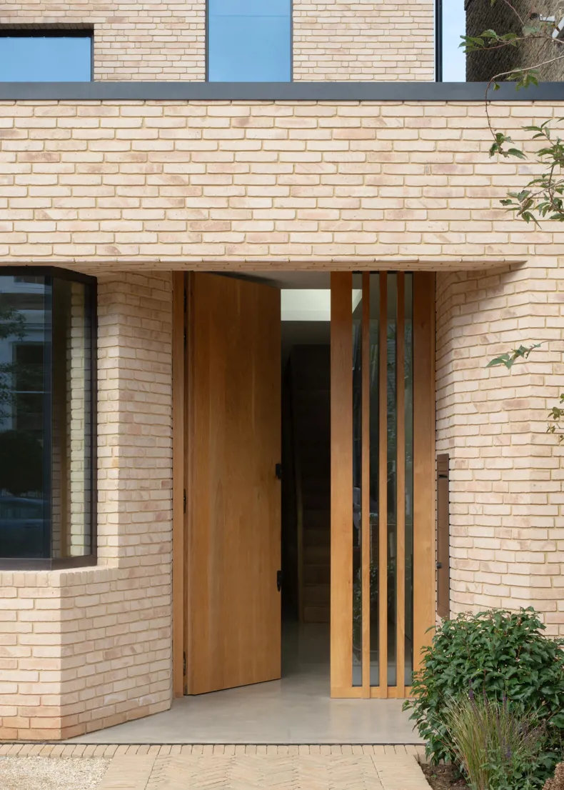 De selectie van Vande Moortel NATURE7 Brick J onderstreept Studio AVC's toewijding aan het creëren van een ontwerp dat zowel eigentijds als contextueel respectvol is. Deze handgemaakte gevormde gevelsteen ademt een natuurlijke warmte uit, waardoor het een ideale match is voor de ingewikkelde Victoriaanse baksteenpatronen die kenmerkend zijn voor de buurt. De genuanceerde tinten overbruggen de kloof tussen de moderne lijnen van het Frame House en de details van de aangrenzende panden die de Victoriaanse periode benadrukken. Door de NATURE7 Brick J in het ontwerp te integreren, creëerde Studio AVC een gevel die niet alleen het lokale straatbeeld aanvult, maar ook verheft, en de kloof overbrugt tussen hedendaags ontwerp en de traditionele kenmerken van de Victoriaanse architectuur eromheen. Volgens Studio AVC "dient het ‘dog-tooth’ metselwerk op de voorgevel als een opvallend kenmerk, dat direct is geïnspireerd op de decoratieve baksteenpatronen die langs de straat te zien zijn. De hoekige geometrie van de gevel verwijst ondertussen subtiel naar de gekantelde erkers die een kenmerk zijn van de historische huizen in de omgeving".
