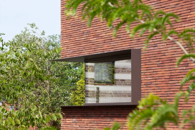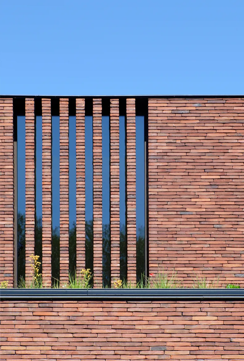 Riante slanke bakstenen zuilen creëren unieke, functionele natuurlijke lichtinval
