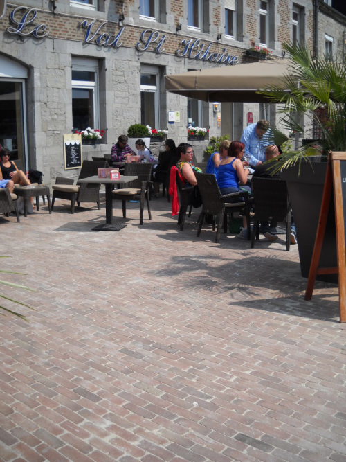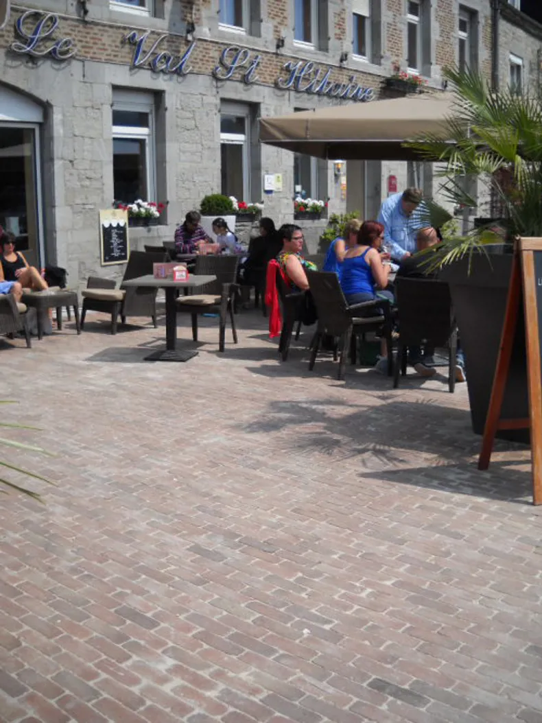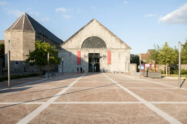 Het kerkplein in klinkers en blauwe steen dat toegang geeft tot Cinema Le Manège is verlengd, wat de organisatie van diverse evenementen mogelijk maakt.
