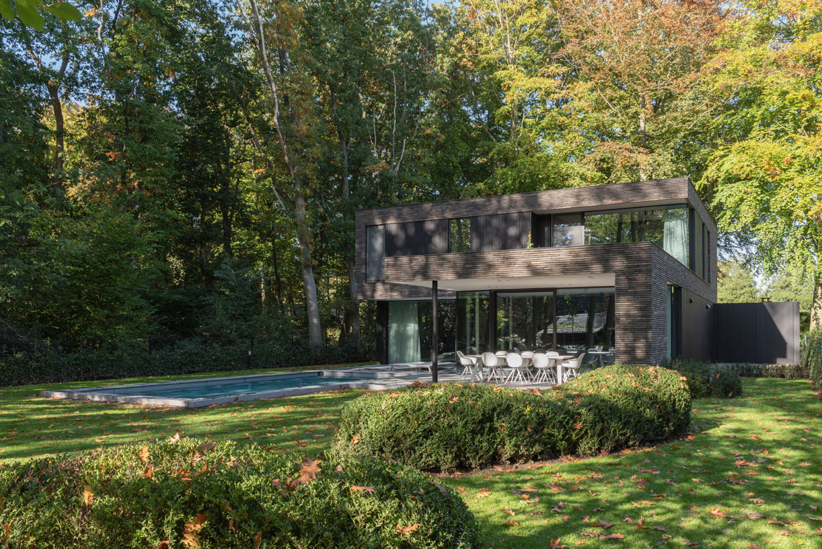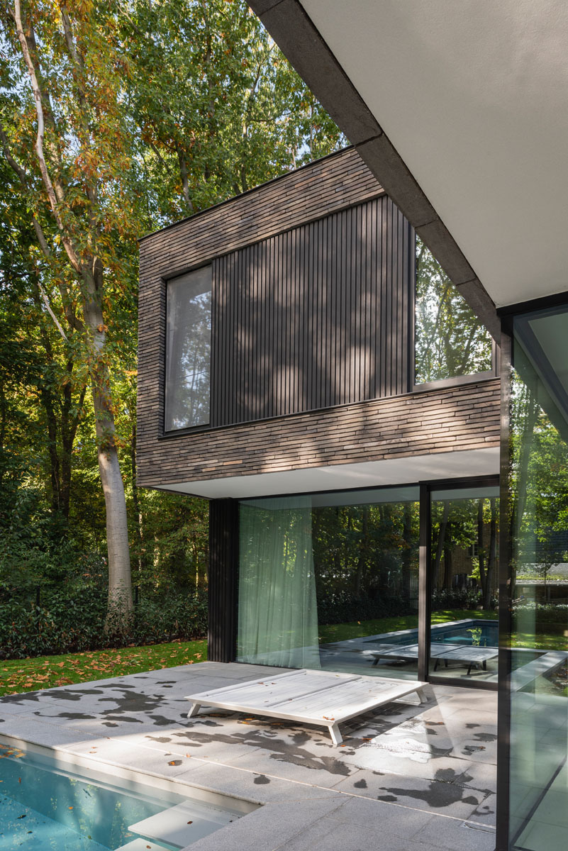 Hand-Made langformaat gevelsteen verenigt moderne villa met bosrijke context