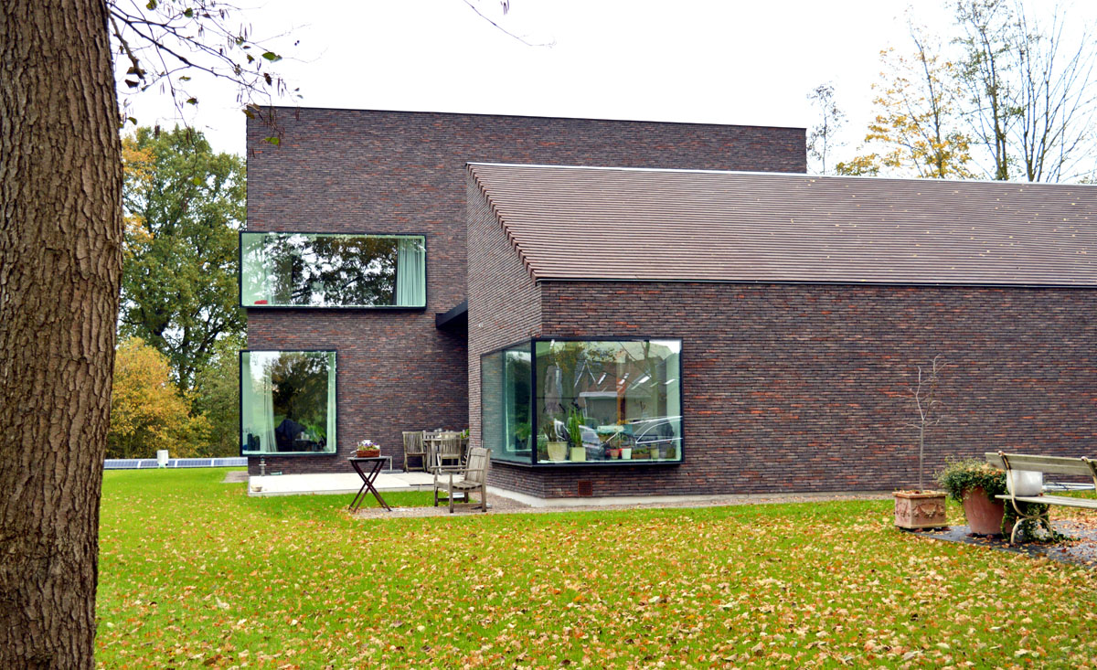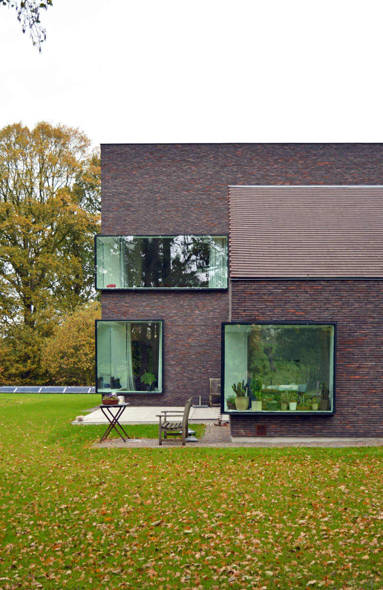 De gebruikte materialen baksteen, leien, aluminium en hout, zijn zo gekozen dat het gebouw één geheel lijkt en een warme, uitnodigende uitstraling heeft. De grote ramen zijn ontworpen om aan de binnenkant een maximaal zicht op het landschap mogelijk te maken en om het huis aan de buitenkant een sterke identiteit te geven.