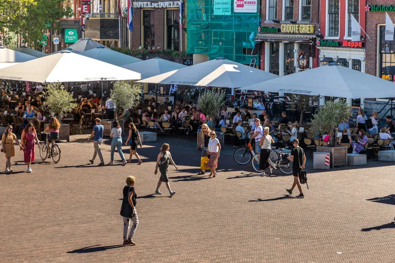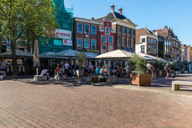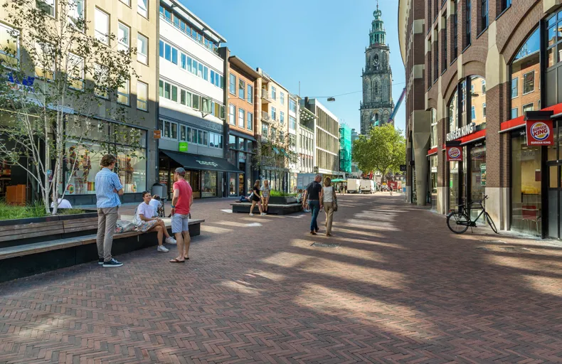 De Grote Markt is door deze herinrichting weer het kloppende hart van Groningen geworden. De vernieuwde aanleg met meer groen, meer zitplaatsen en een geoptimaliseerde bestrating zorgt niet alleen voor een mooi visueel resultaat, maar speelt ook een belangrijke rol in het gebruik van de markt. Voetgangers hebben volop de ruimte, en het plein nodigt uit tot ontmoeting en ontspanning.