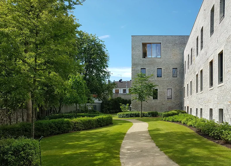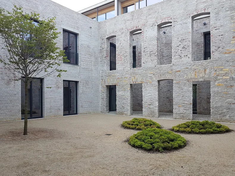De structuur van het kloostergebouw werd uitgebreid met een ensemble van nieuwe vleugels van twee tot drie verdiepingen. De toevoegingen, gemaakt van beton en hout, zijn georganiseerd volgens de orthogonale structuur van het historische klooster. Hierdoor ontstaat een compositie van vrijstaande volumes die opgaan in het stadsbeeld en zich tegelijkertijd onderscheiden van de omliggende gebouwen.