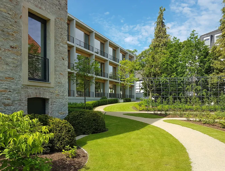 Dankzij het ontwerp van Chipperfield en Wirtz – dat een bekroning kreeg “Auszeichnung vorbildlicher Bauten” in Nordrhein-Westfalen in 2020– is de familie Jacoby erin geslaagd de geschiedenis van de locatie als hoofdkantoor van hun familiebedrijf te respecteren en te bestendigen. De ziel van het authentieke klooster is nog steeds aanwezig en krijgt een tweede leven als inspirerende werkomgeving. ‘Ora et labora’ in een nieuw jasje dat als gegoten zit…
