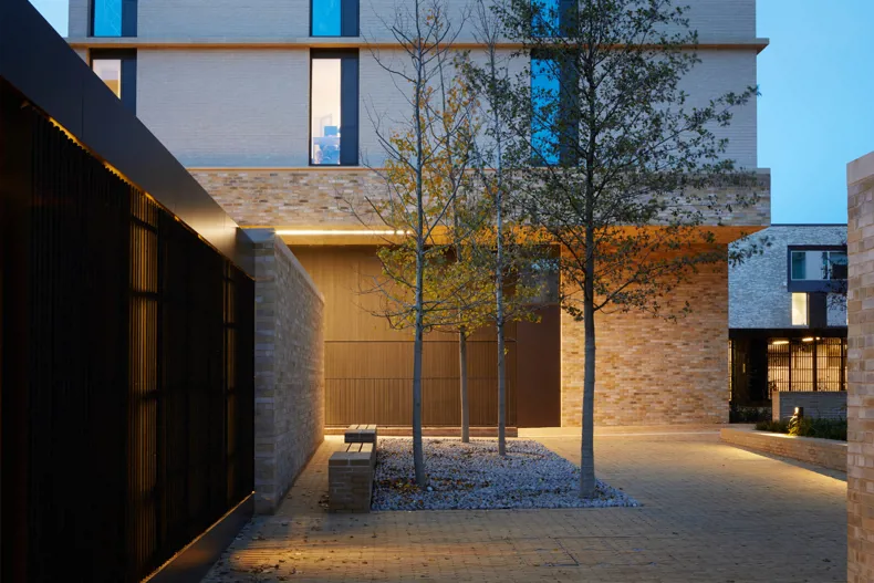 Het palet van natuurlijke materialen verwijst naar de materialiteit van de huiselijke architectuur in Cambridge. Kleiklinkers en traditionele kasseien zorgen voor continuïteit en een gevoel van duurzaamheid, terwijl hout en natuurlijke elementen zoals planten en waterpartijen details op een intiemere schaal introduceren. De warme, gele SeptimA Vanille kleiklinkers passen perfect bij de omgeving.