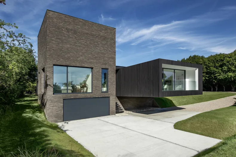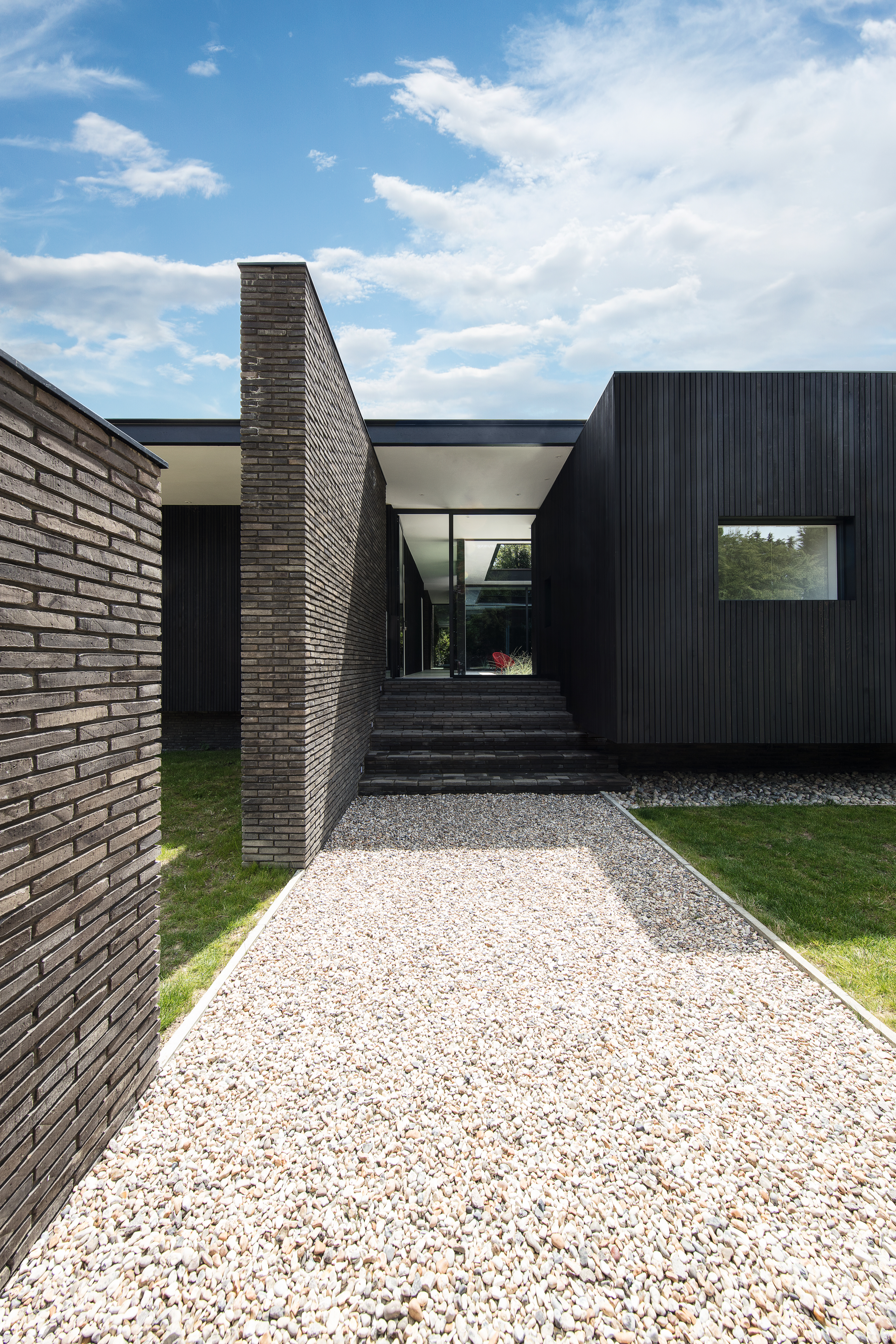 AR Design Studio koos voor de genuanceerde Hand-Made Linea 6012 als gevelsteen omwille van het lange en smalle formaat en ook voor de kleur en textuur, die perfect passen bij het concept. Aangezien de kleur van de gevelsteen lichter is dan het zwarte hout, sluit dit aan bij de kleur van de vensters en de houten bekleding.