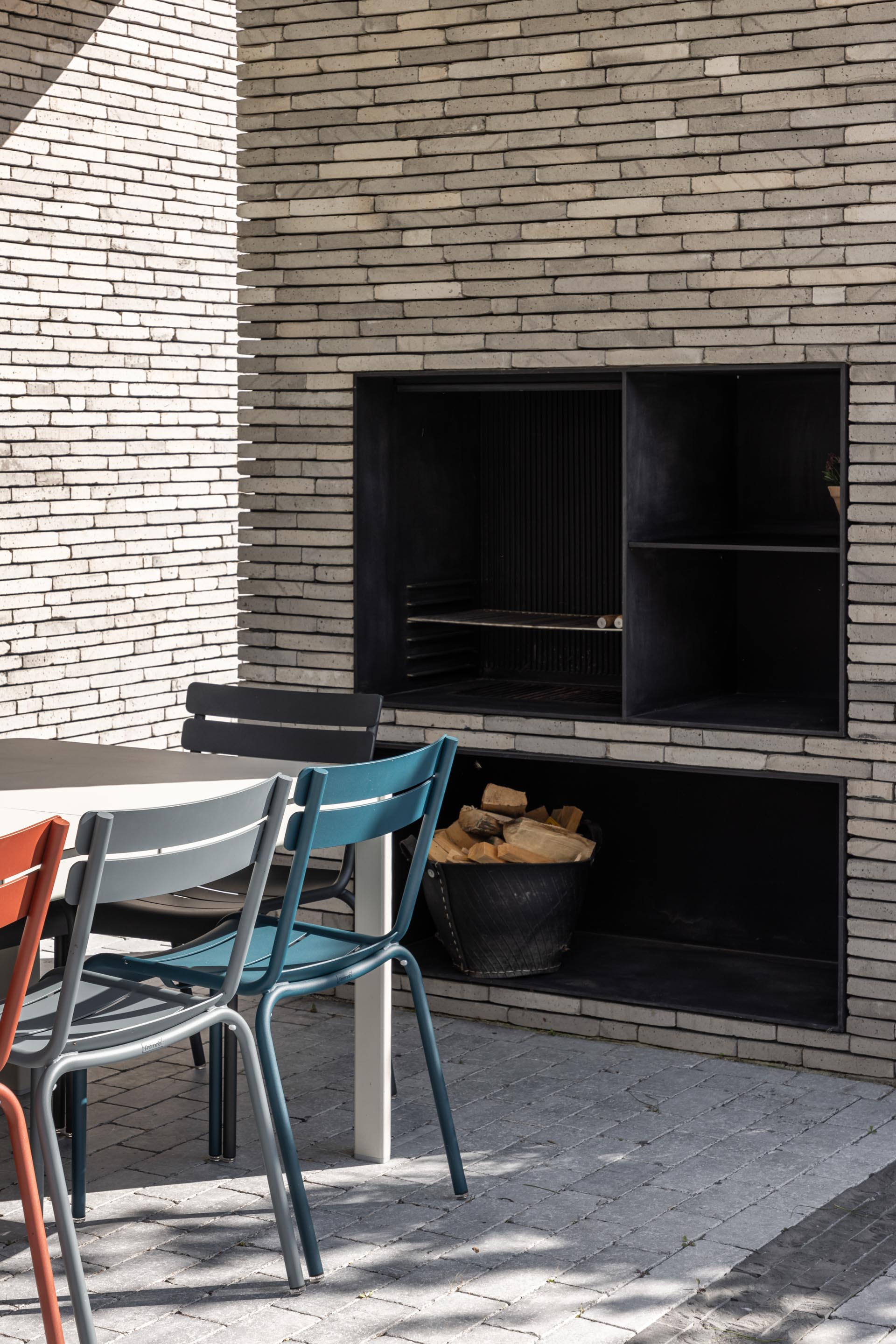 Deze genuanceerde dunne gevelsteen, geproduceerd volgens de Wasserstrich-methode draagt tevens ons Hand-Made label dat garant staat voor een krachtige, natuurlijke nuance. Ze worden gereduceerd gebakken waardoor er binnen één productieproces kleurverschillen ontstaan. De nuances zijn zichtbaar tussen de verschillende stenen en de zijden onderling. De combinatie met de handmatige verwerking tijdens het productieproces maakt zo elke steen uniek. Zo verkrijgen ze hun ruwe contouren en vertonen ze sporen van deze manuele handelingen. Het gebruik van zwart aluminium schrijnwerk en subtiele houtaccenten in de gevel versterken deze harmonie van materialen, waardoor een tijdloos en evenwichtig geheel ontstaat.