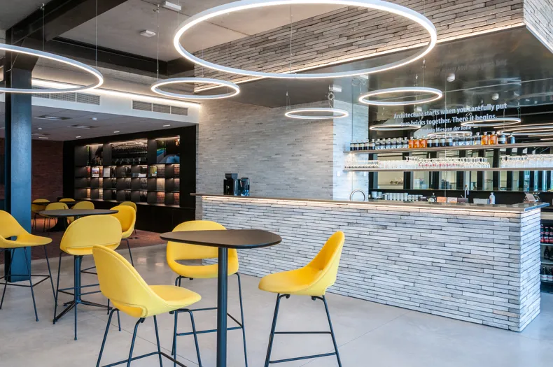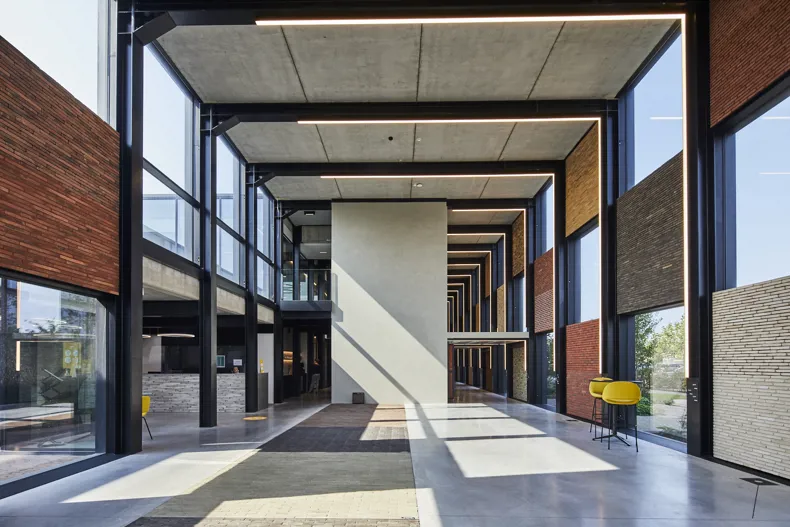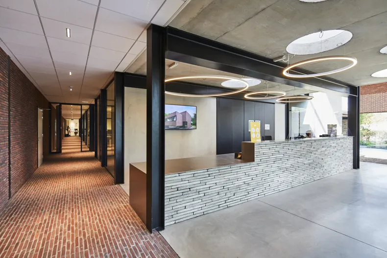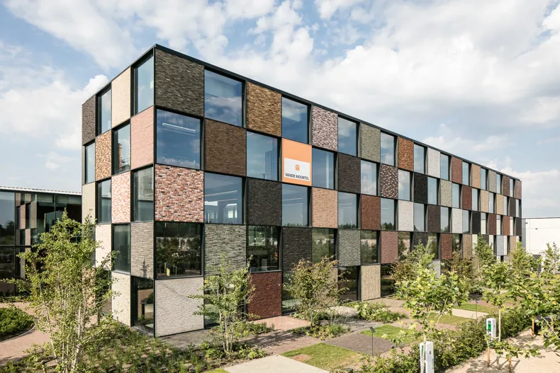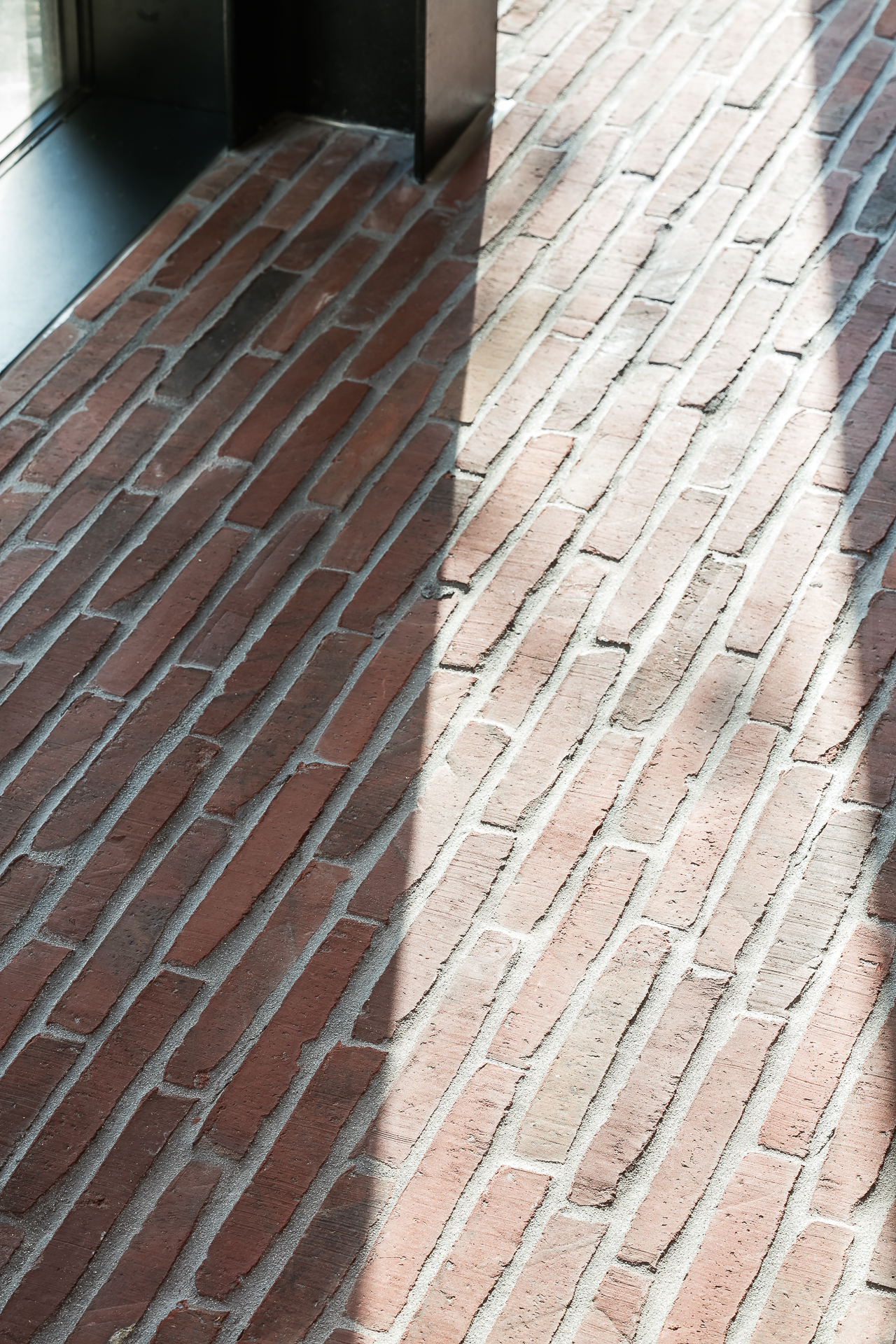 Het gebouw laat niet alleen een volledig gamma zien, het toont eveneens de veelzijdigheid in het gebruik van keramische gevelstenen en klinkers. Beide doen de laatste jaren terug meer en meer hun intrede in interieurs en worden verwerkt met een veelheid aan technieken.