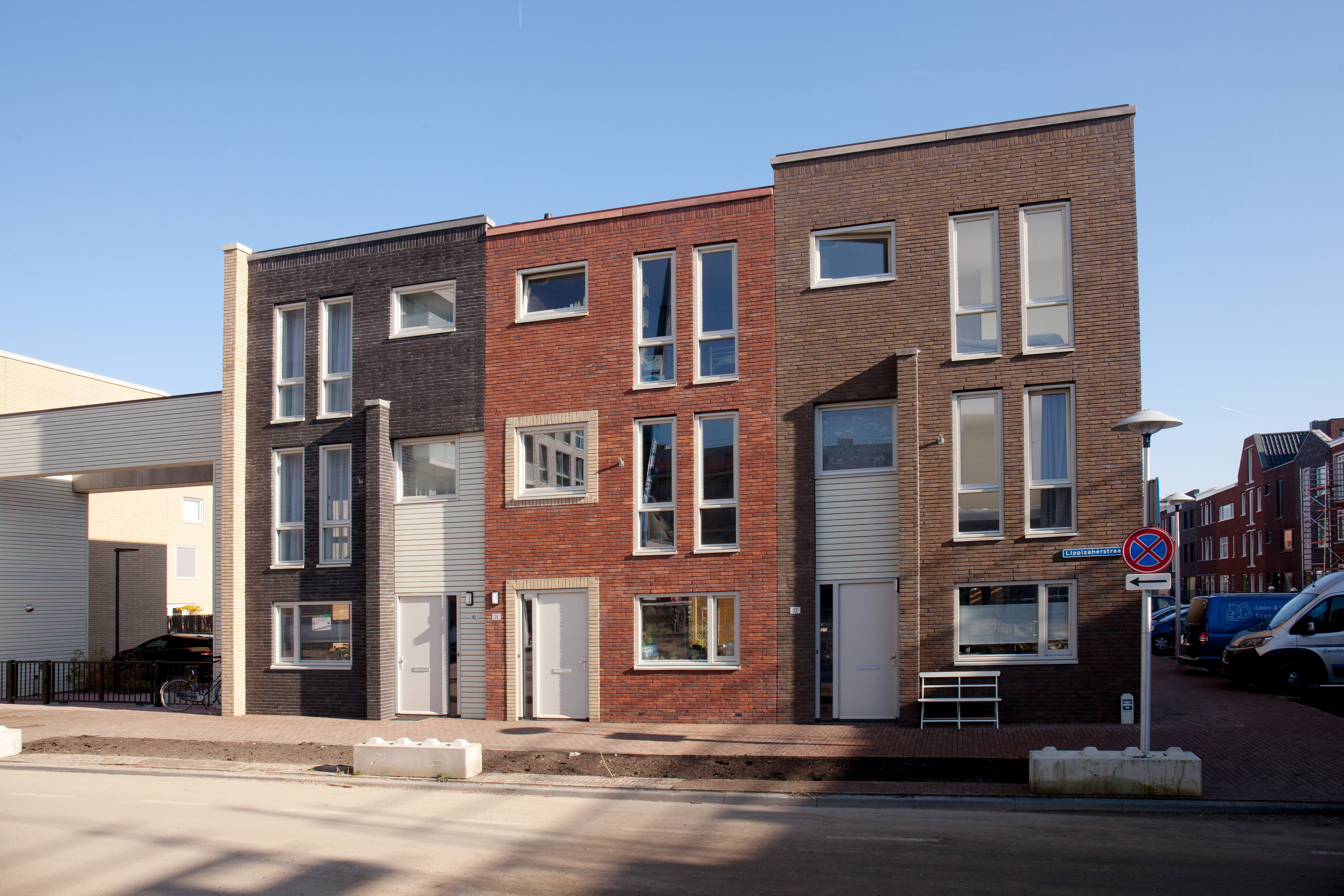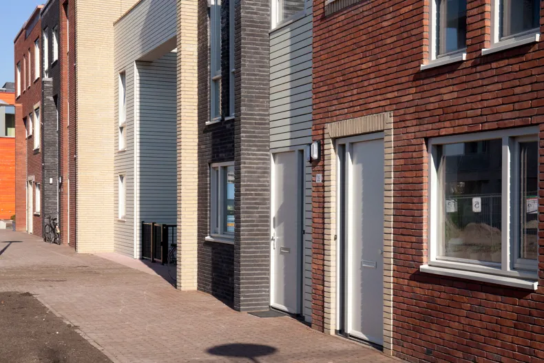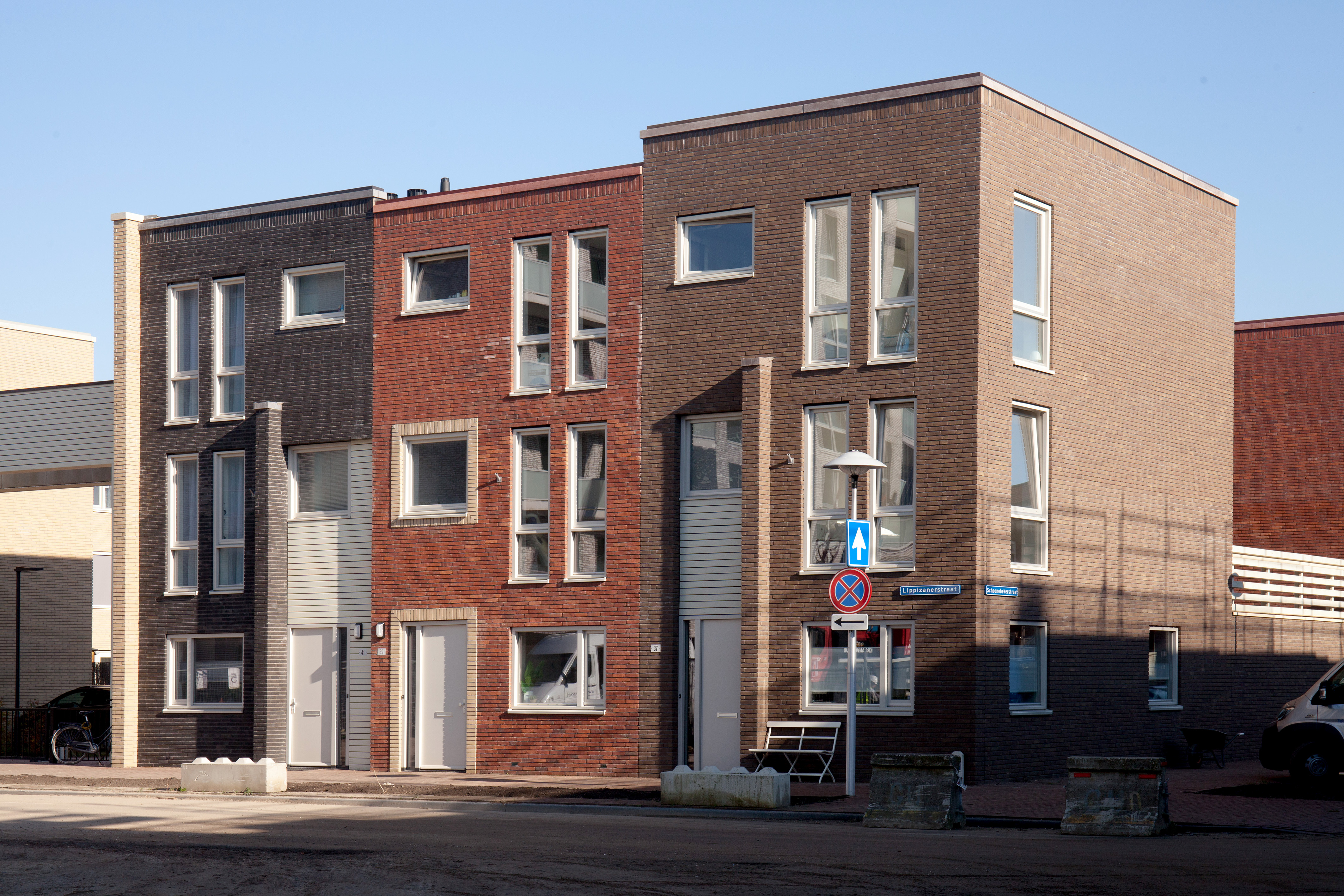 De buitengevels worden, met de NATURE7 Brick E en Brick K en de sEptEm 8025 en sEptEm 5004, in meer gesatureerde kleuren uitgevoerd om de stadse stevigheid te benadrukken en gezamenlijk een herkenbare identiteit te vormen.