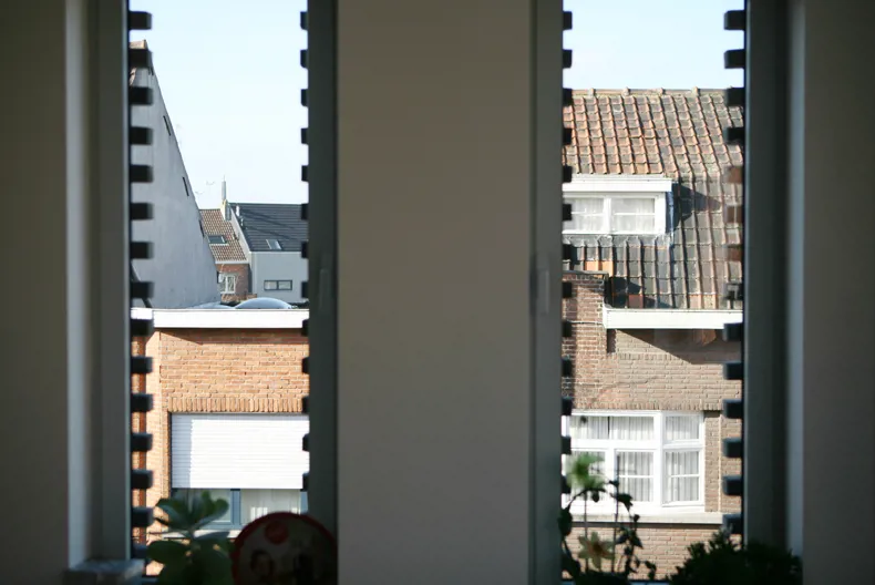 Rest nog de aandacht te vestigen op een origineel detail voor de ramen van de keukens van de twee appartementen: de bakstenen zijn niet afgezaagd maar lopen gewoon door, waarbij ze van binnenuit gezien een gekartelde rand vormen voor de ramen…