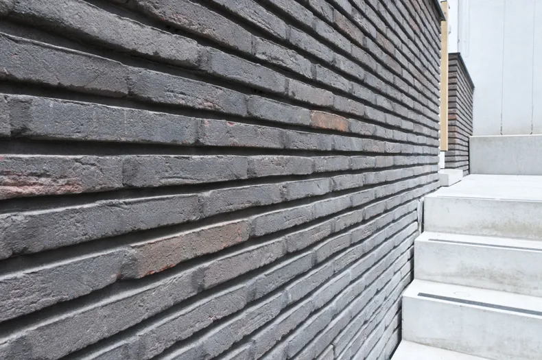Lange, dunne linea gevelsteen met terugliggende voeg benadrukt lineariteit