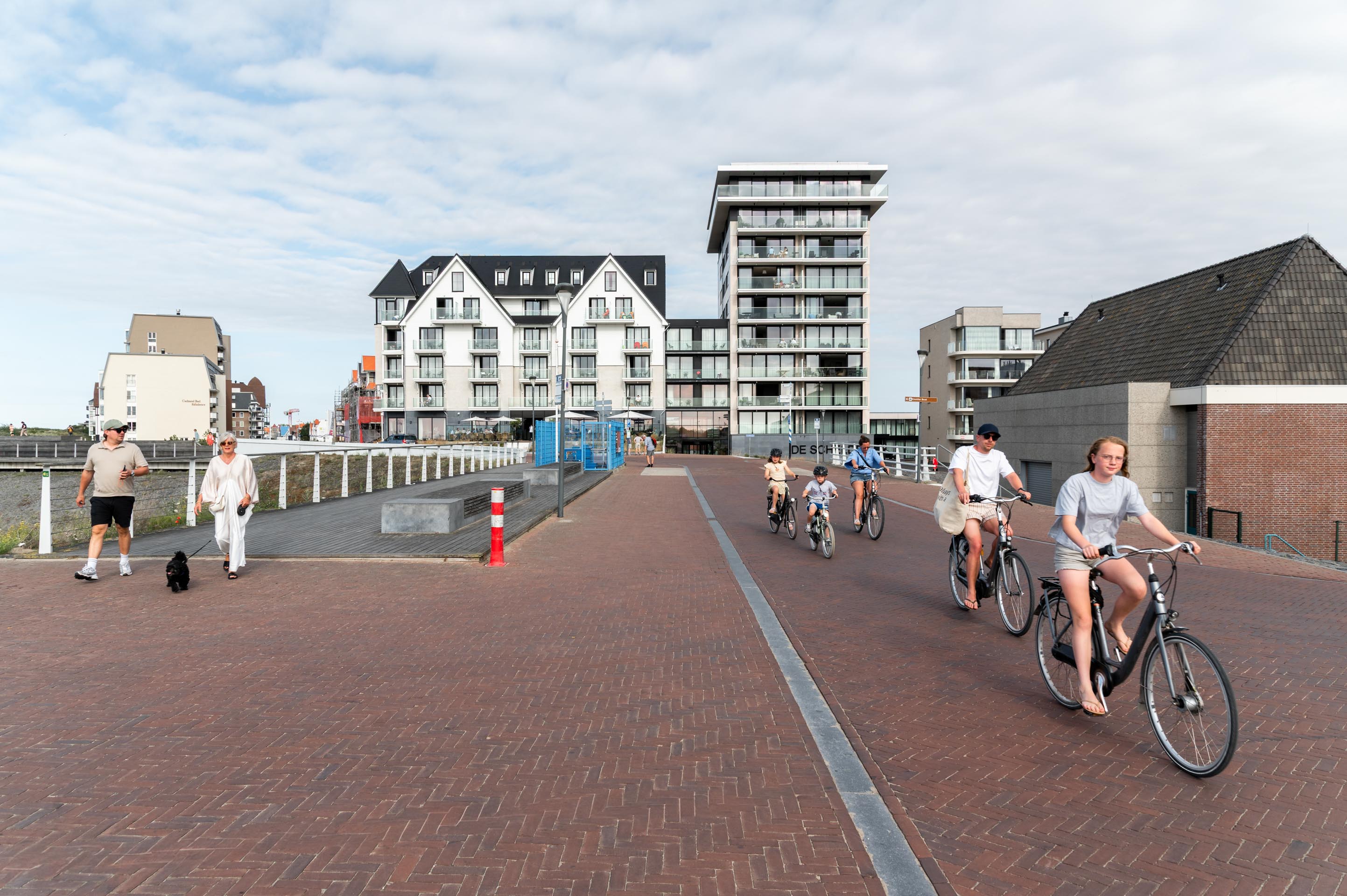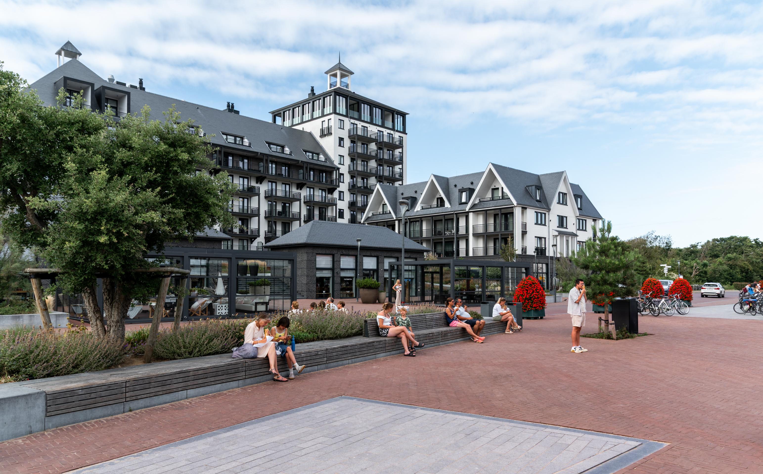 De ontwerpvisie van OKRA vertrekt vanuit een heldere structuur met drie ankerpunten: de jachthaven met het Maritiem Balkon, het Duinplein in het centrum en het Strandbalkon bij het Duinhof. Op deze plekken komt de badplaats samen en ontstaat een vanzelfsprekende overgang naar duinen en zee. De straatbaksteen speelt hier een verbindende rol: pleinen, paden en overgangen geven structuur aan de omgeving en hangen logisch samen. Ook de verwerking van de straatbakstenen draagt bij aan de leesbaarheid van het landschap. Elleboog- en keperverbanden brengen ritme in het geheel en begeleiden beweging in de ruimte. Ze markeren subtiel overgangen tussen verblijfszones en circulatie. Zo is er op de overgang van de Boulevard de Wielingen naar de haven een nieuw, hellend plein aangelegd waaronder auto’s kunnen parkeren. Verrassende zit- en ligplekken geven het duingebied een ontspannen karakter. Betonnen randen structureren hier hoogteverschillen terwijl houten elementen tactiliteit en comfort toevoegen. Rond de jachthaven geven natuursteen en roestvrij staal de omgeving dan weer een verfijnde, maritieme uitstraling.