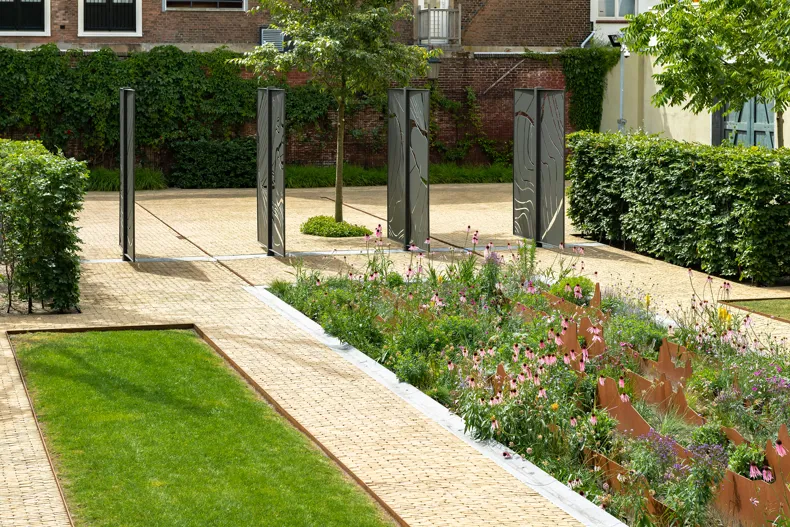 Bronsgele Ancienne Belgique kleiklinker krijgt plaats in bijzondere tuin van Huis van Staat