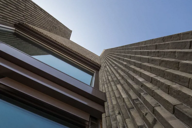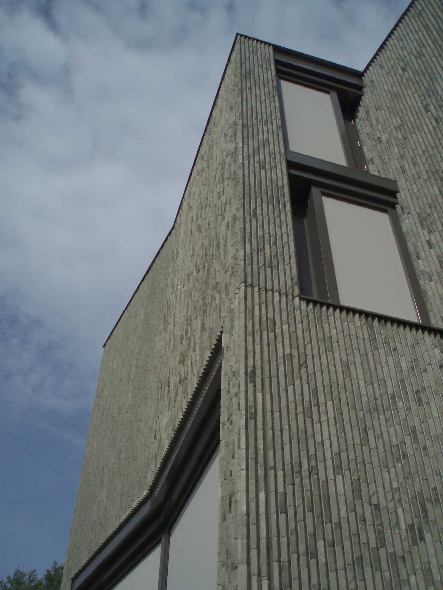 Technisch gezien zijn de gevels opgetrokken uit grote betonelementen. De Nature7 Brick R werd om esthetische redenen toegevoegd aan deze elementen. Ze werden gemaakt door de gevelstenen eerst in een houten mal te plaatsen en vervolgens de mal vol te storten met beton.